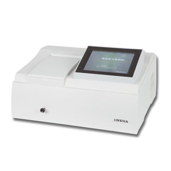 ,酶催化神經(jīng)傳導代謝產(chǎn)物(乙酰膽堿)水解,其水解產(chǎn)物與顯色劑反應,產(chǎn)生黃色物質(zhì),用分光光度計測定412nm下吸光度隨時間的變化值,計算出抑制率,通過抑制率可以判斷出樣品中是否含有有機磷或氨基甲酸酯類農(nóng)藥的殘留。可以實現(xiàn)有機磷及氨基甲酸酯類農(nóng)藥殘留量的現(xiàn)場快速檢測。